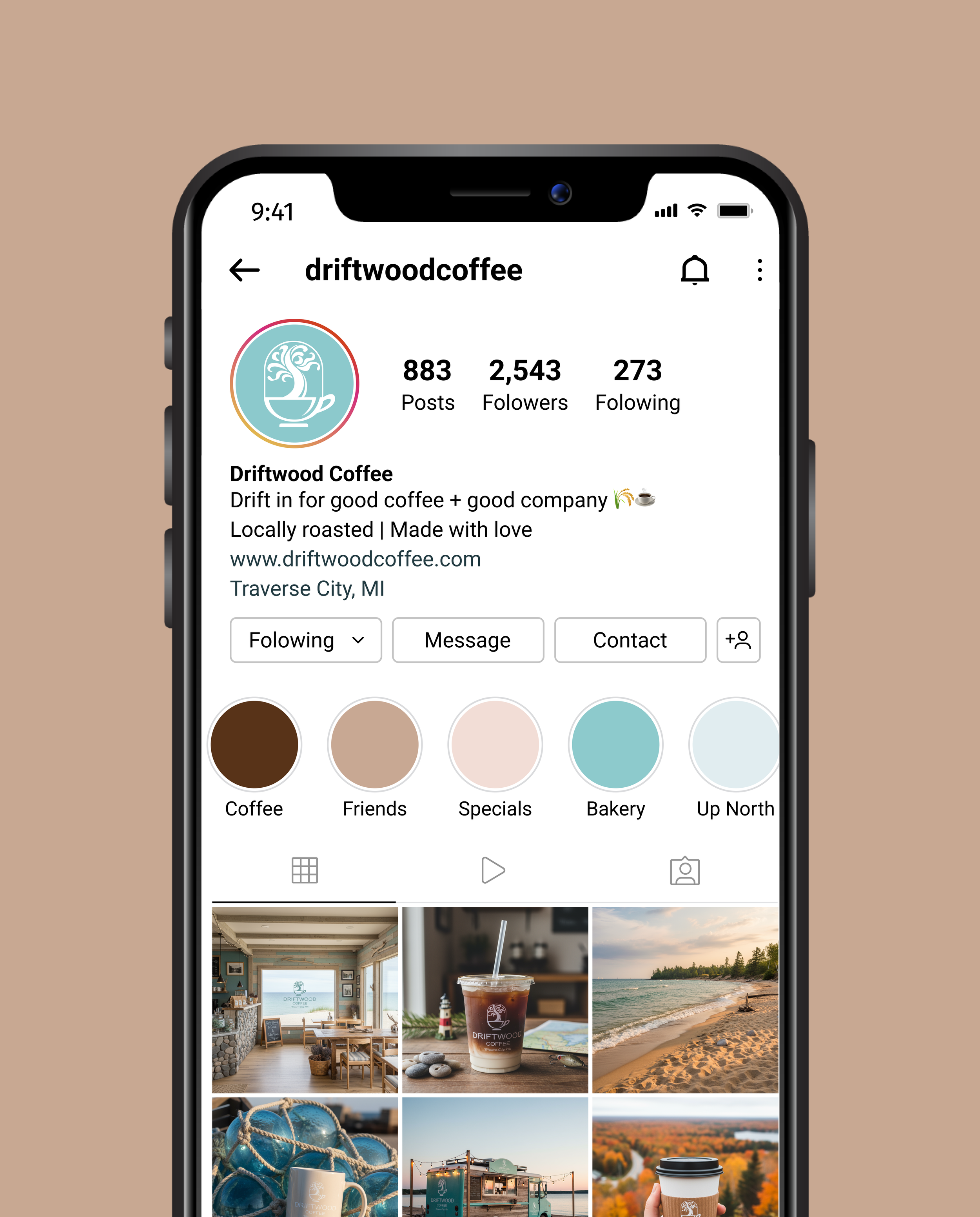 Driftwood Coffee is a conceptual northern Michigan café inspired by the rugged beauty of the Great Lakes shoreline — where weathered wood, soft sand, and quiet mornings create a sense of ease.